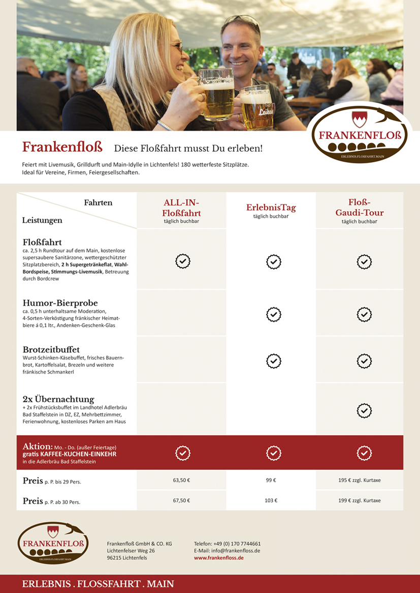 Auf alle regulären Frankenfloß-Angebote anwendbar.